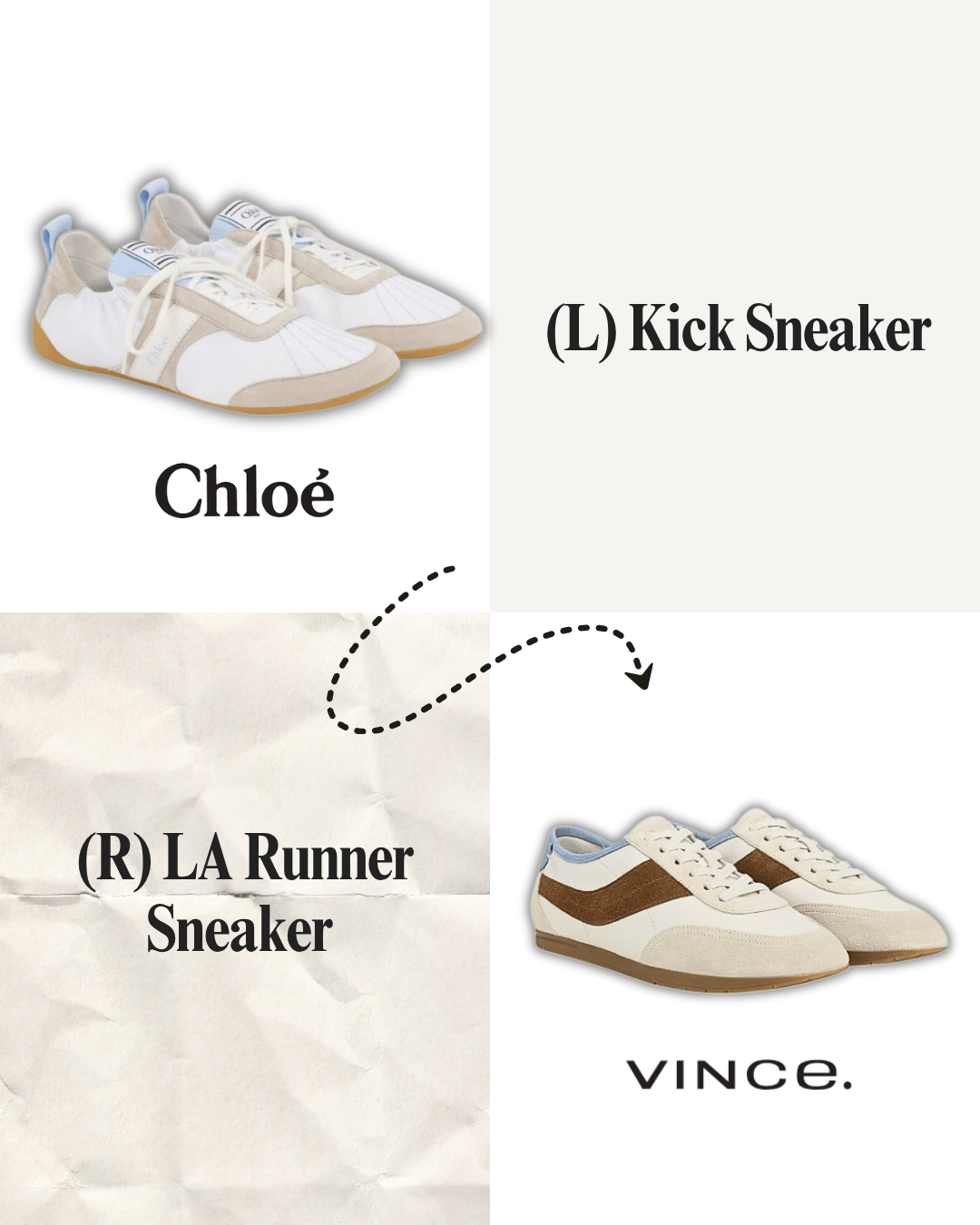 The Blue Accents: While the Chloé Kick Sneaker features a prominent powder blue heel tab, the Vince LA Runner (USD$275) incorporates a similar hue along the ankle collar lining, maintaining that same subtle pop of color.